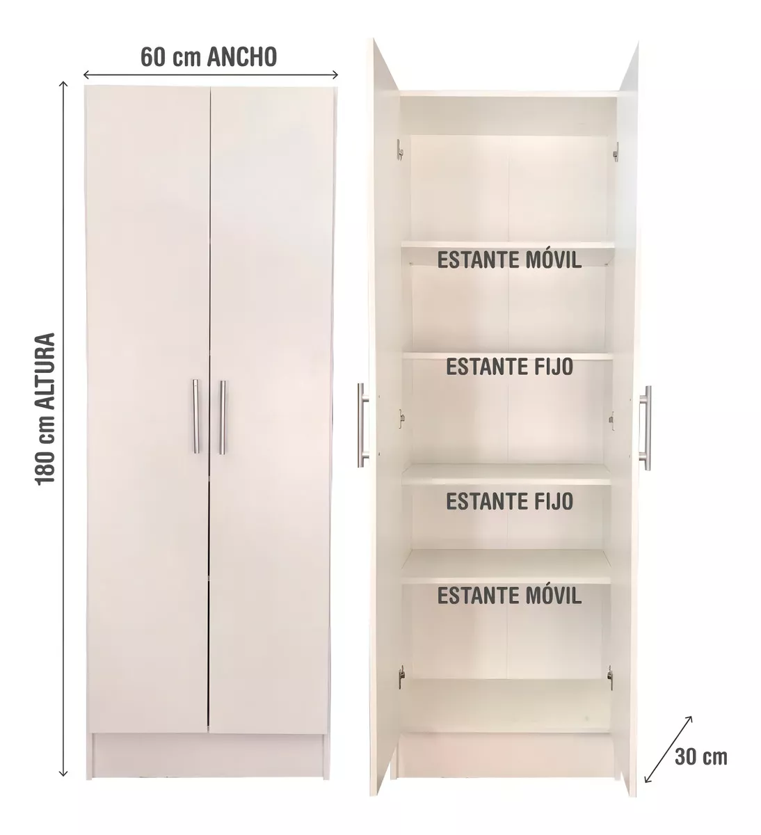 El Despensero 2 Puertas Cocina 1.80 Forrado Mueble Organizador Color Blanco es el complemento perfecto para tu cocina. Con su diseño moderno y elegante, este mueble te brinda la funcionalidad que necesitas para mantener tu despensa organizada. Sus dos puertas te permiten acceder fácilmente a tus alimentos y utensilios, mientras que sus cinco estantes ofrecen amplio espacio de almacenamiento. Fabricado con materiales de alta calidad como la melamina, este despensero es resistente y duradero. Además, su color blanco le da un toque de luminosidad y estilo a tu cocina. Disfruta de un espacio ordenado y práctico con este despensero.