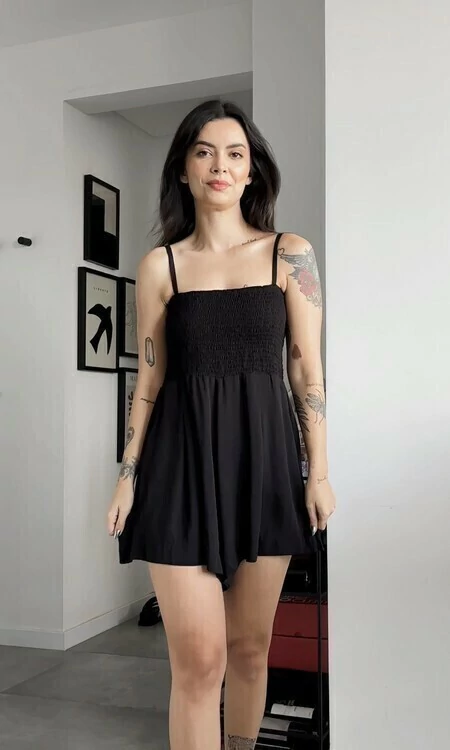 Confeccionado en 100% viscosa, este modelo ofrece una suavidad y frescura excepcionales. La correa ajustable permite un ajuste personalizado para mayor comodidad, mientras que el busto elástico asegura un soporte seguro y flexible. Las piernas anchas aportan un toque de elegancia y libertad de movimiento, haciendo de este modelo una opción ideal para cualquier ocasión.