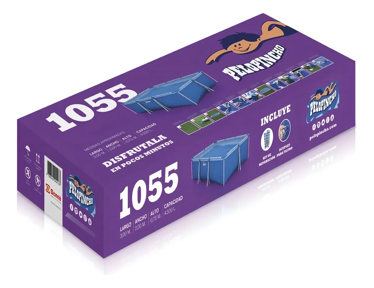 Pelopincho es una reconocida marca Argentina que, desde hace más de 70 años, ofrece productos creativos y adaptados a los consumidores. ¡Todos al agua! Con esta pileta, vas a pasar las mejores tardes de verano: frescas y divertidas. Para todo tipo de espacios Por su forma rectangular y su tamaño amplio y cómodo de 3 m de largo y 2 m de ancho, los meses de calor serán tus preferidos del año para compartir momentos únicos junto a quienes más querés. Comodidad y cuidado Con su válvula de desagüe, vas a poder sacar el agua de una manera mucho más rápida y simple cuando desees limpiarla o vaciarla.